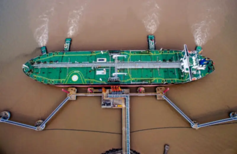 চীনের ঝেজিয়াং প্রদেশের ঝোউশান এলাকায় একটি টার্মিনালে ট্যাংকার থেকে অপরিশোধিত তেল খালাস করা হচ্ছে। ২০১৮ সালের ৪ জুলাই তোলা এই ছবি দেখায়, যুদ্ধের মধ্যেও ইরান জ্বালানি তেল বিক্রি থেকে কয়েক শ কোটি ডলার অতিরিক্ত আয় করছে। হরমুজ প্রণালি ব্যবহার করতে পারা একমাত্র বড় রপ্তানিকারক দেশ হওয়ায় বিশ্ববাজারে ইরানি তেলের দাম ও চাহিদা—উভয়ই বেড়েছে।