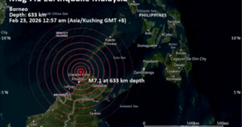 মালয়েশিয়ার বোর্নিও দ্বীপের সাবাহ অঙ্গরাজ্যের উপকূলে একটি শক্তিশালী ভূমিকম্প অনুভূত হয়েছে। মার্কিন ভূতাত্ত্বিক জরিপ সংস্থা (ইউএসজিএস) জানিয়েছে, ভূমিকম্পটির মাত্রা রিখটার স্কেলে ৭.১ রেকর্ড করা হয়েছে। কম্পনটি স্থানীয় সময় সোমবার (২৩ ফেব্রুয়ারি) রাত ১২টা ৫৭ মিনিটে শুরু হয় এবং ভূপৃষ্ঠে অনুভূত হয়।