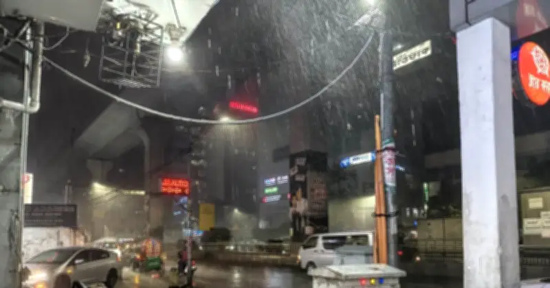 রাজধানী ঢাকা ও তার আশপাশের এলাকায় হঠাৎ করেই কালবৈশাখী ঝড়ের তাণ্ডবলীলা শুরু হয়েছে। বুধবার (১ এপ্রিল) রাত সাড়ে আটটার দিকে ঝড়ো হাওয়ার সঙ্গে মুষলধারে বৃষ্টি নামে, যা দ্রুতই বজ্রপাত ও শিলাবৃষ্টিতে রূপ নেয়। বাংলামোটর, শাহবাগ, মগবাজার, কারওয়ান বাজার, ফার্মগেট এবং তেজগাঁওসহ বিভিন্ন এলাকায় এই আকস্মিক আবহাওয়া পরিবর্তনে নগরজীবন সম্পূর্ণভাবে ভিজে যায়।