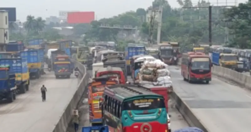 ঢাকা-চট্টগ্রাম মহাসড়কে তীব্র যানজট: বৃষ্টি ও সড়কের বেহাল অবস্থায় যাত্রীদের চরম দুর্ভোগ