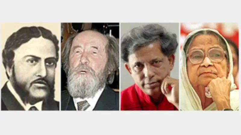 মধুসূদন দত্ত (১৮২৪-১৮৭৩): বাংলা ভাষা আন্দোলনের আগে মধুসূদন দত্ত প্রথমে বাংলাকে অবজ্ঞা করে ইংরেজি ভাষায় সৃজনশীল কাজ শুরু করেন। কিন্তু ইংরেজিতে তাঁর কর্ম আদৃত না হওয়ায় তিনি মাতৃভাষা বাংলাকেই আলিঙ্গন করেন। বাংলায় অমিত্রাক্ষর ছন্দের স্রষ্টা হিসেবে তাঁর ‘মেঘনাদবধ’ কাব্য ২০০৪ সালে ইংরেজিতে অনূদিত হয়, যা তাঁর মাতৃভাষায় চর্চার সাফল্য প্রমাণ করে।