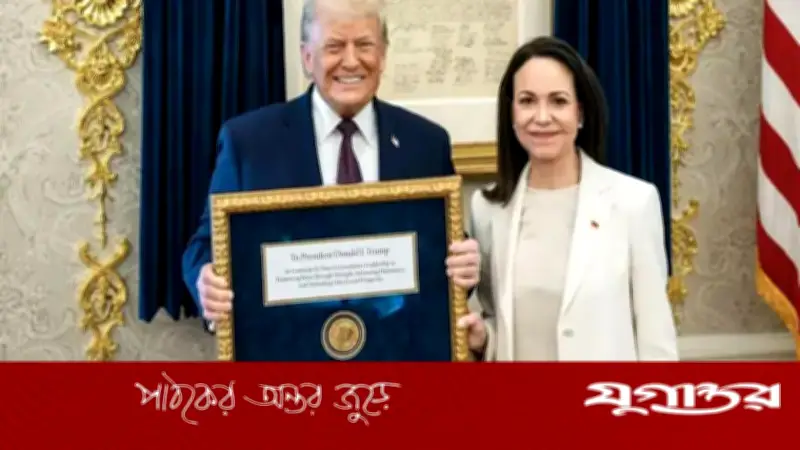 মাচাদো বলেন, ‘বিশ্বে এমন একজন নেতা আছেন, যিনি ভেনেজুয়েলার স্বাধীনতার জন্য নিজের দেশের নাগরিকদের জীবন ঝুঁকিতে ফেলেছেন।’ তিনি জানান, গত জানুয়ারিতে হোয়াইট হাউসে ট্রাম্পের সঙ্গে সাক্ষাৎকালে তিনি এই মেডেলটি তাকে প্রতীকীভাবে দেন। এই ঘটনাটি ভেনেজুয়েলার রাজনৈতিক পরিস্থিতির একটি গুরুত্বপূর্ণ দিক হিসেবে বিবেচিত হচ্ছে।