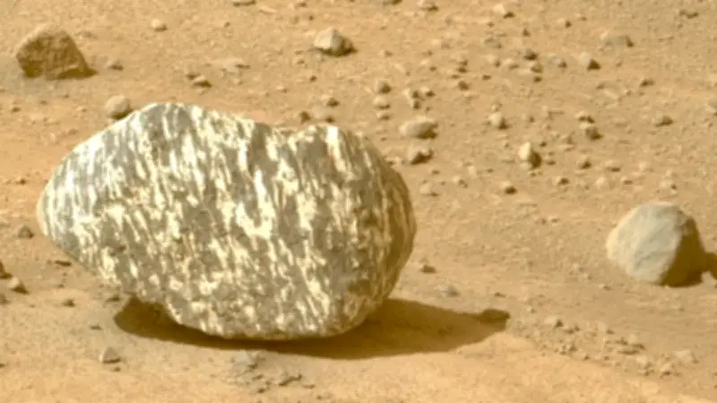 মঙ্গল গ্রহের রহস্যময় লাল মাটিতে এবার সন্ধান মিলেছে অদ্ভুত এক ডোরাকাটা পাথরের। নাসার পারসিভিয়ারেন্স রোভার জেজেরো ক্রেটার নামক গহ্বরের ঢালে এই সাদা-কালো ডোরাকাটা পাথরটি আবিষ্কার করেছে, যা দেখতে অনেকটা জেব্রার শরীরের মতো। ২০২৪ সালের ১৩ সেপ্টেম্বর রোভারটি যখন জেজেরো ক্রেটারের কিনারা ধরে ধীরে ধীরে উপরের দিকে উঠছিল, তখনই এর নেভিগেশন ক্যামেরায় ধরা পড়ে এই বিস্ময়কর পাথরটির ছবি।
