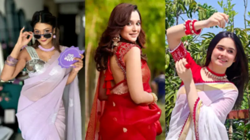 অন্যান্য তারকারাও পিছিয়ে নেই। রূপালি ব্রালেট টপের সঙ্গে ল্যাভেন্ডার শাড়ি পরেছেন একজন তারকা, যা আউট অব দ্য বক্স বৈশাখী লুক হিসেবে পরিচিতি পেয়েছে। অন্যদিকে, ঘিয়ে রঙের শাড়িতে লাল কার্ভড বর্ডার, লাল ব্লাউজ আর ছোট কালো টিপ পরেছেন তাসনিয়া ফারিণ। তাঁর সঙ্গে চুড়ি ও ঝুমকা গয়না এই লুকটিকে করেছে আরও আকর্ষণীয়।