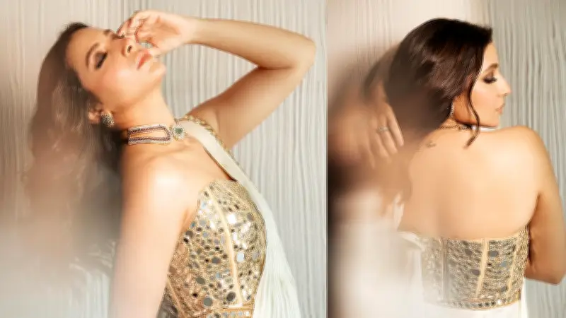 প্রথম ফটোশুটে শুভশ্রী একটি স্ট্র্যাপলেস মেটালিক ব্লাউজের সঙ্গে সাদা শাড়ি পরিধান করেছেন, যা তাঁর স্টাইলিং দক্ষতার পরিচয় দিচ্ছে। দ্বিতীয় ছবিতে তিনি ঝলমলে সোনালি ব্লাউজে করসেট স্টাইল উপস্থাপন করেছেন, যেখানে সাদা শাড়িতে সোনালি বর্ডার যোগ করে দৃষ্টিনন্দন প্রভাব সৃষ্টি করা হয়েছে। তৃতীয় লুকে ব্যাকলেস ডিজাইনের মাধ্যমে আকর্ষণ আরও বৃদ্ধি পেয়েছে, যা তাঁর ফ্যাশন সেন্সের উৎকৃষ্ট উদাহরণ।