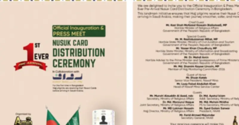 বেসরকারি হজ ব্যবস্থাপনায় প্রথমবারের মতো নুসুক কার্ড বিতরণের আনুষ্ঠানিক উদ্বোধন