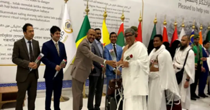 জেদ্দা বিমানবন্দরে বাংলাদেশি হজযাত্রীদের জন্য একটি বিশেষ অভ্যর্থনা অনুষ্ঠানের আয়োজন করা হয়েছিল। সৌদি আরবে নিযুক্ত বাংলাদেশের রাষ্ট্রদূত মো. দেলওয়ার হোসেন এবং কাউন্সিলর (হজ) মো. কামরুল ইসলাম হজযাত্রীদের ফুল দিয়ে শুভেচ্ছা জানান। এছাড়াও, তাদের হাতে রিফ্রেশমেন্ট কিট তুলে দেওয়া হয়, যা যাত্রীদের দীর্ঘ ভ্রমণের পর স্বস্তি প্রদান করে।