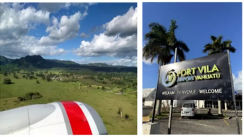 বিমানবন্দরে পৌঁছানোর পর হাসিমুখে স্থানীয়দের আন্তরিকতা চোখে পড়ে। ড্রাইভার ফ্রাঙ্ক, যিনি চীনা বংশোদ্ভূত এবং দীর্ঘদিন ধরে ভানুয়াতুতে বসবাস করছেন, তিনি বিমানবন্দর থেকে ভিলায় নিয়ে যান। ভিলা কমপ্লেক্সে মোট ৭টি ভিলা রয়েছে, প্রতিটিতে নিজস্ব সুইমিং পুল ও পার্কিং সুবিধা আছে। ফ্রাঙ্কের কাছ থেকে স্থানীয় টিপস পাওয়া যায়, যা ভ্রমণকে আরও সহজ করে তোলে।
