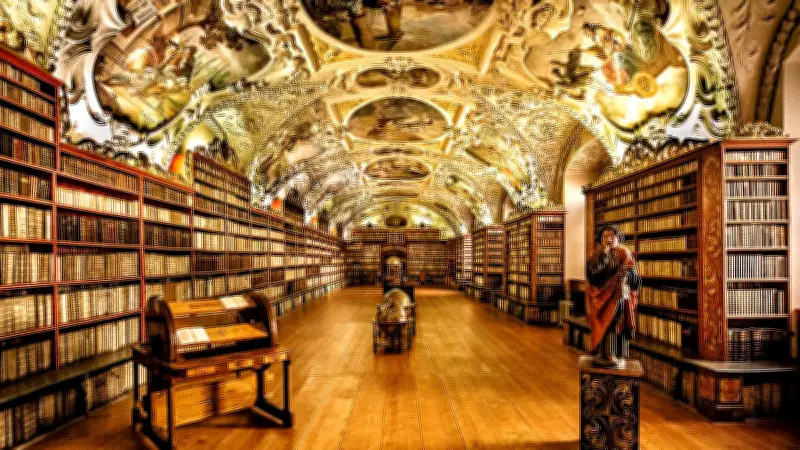 - স্ত্রাহভ মনাস্টেরি লাইব্রেরি, প্রাগ, চেক প্রজাতন্ত্র: নিখুঁতভাবে আঁকা ছাদ ও প্রাচীন গ্লোব নিয়ে এই লাইব্রেরিটি বিশেষ আকর্ষণীয়। থিওলজিক্যাল হল ও ফিলোসফিক্যাল হল শতাব্দীপ্রাচীন পাণ্ডুলিপির সংগ্রহ নিয়ে গর্ব করে।