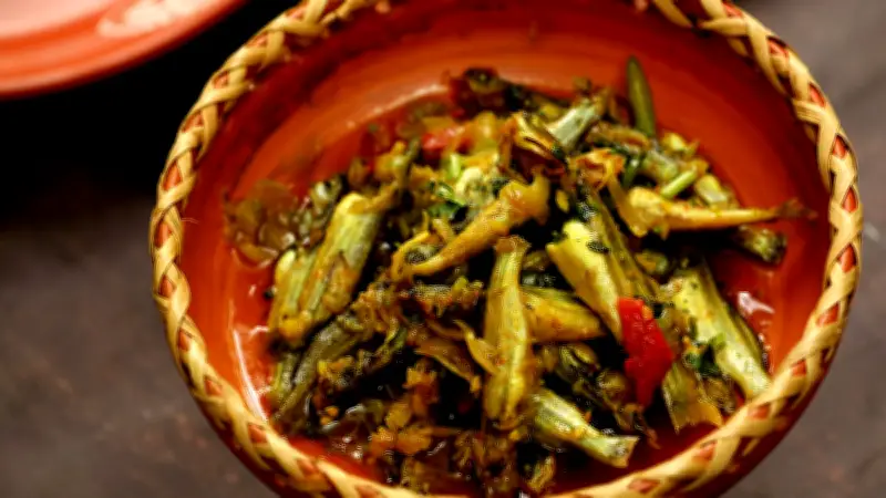 একটি কড়াইতে বাকি শর্ষের তেল গরম করুন। তেলে পেঁয়াজকুচি দিয়ে হালকা বাদামি বর্ণ হওয়া পর্যন্ত ভাজুন। এরপর রসুনবাটা যোগ করে একটু ভেজে নিন। এখন বাকি মসলা যেমন লাল মরিচগুঁড়া, ধনেগুঁড়া এবং হলুদগুঁড়া দিয়ে অল্প পানি সহযোগে কষান। ইচ্ছা করলে এই পর্যায়ে টমেটোকুচি যোগ করে নরম হওয়া পর্যন্ত রান্না করতে পারেন।