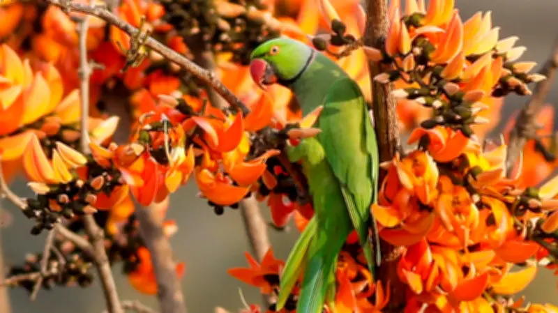 বাংলাদেশের প্রকৃতিতে বসন্তের আগমনে এমন দৃশ্য দেখা যায়, যা প্রকৃতিপ্রেমীদের হৃদয় ছুঁয়ে যায়। পলাশগাছ ও টিয়া পাখির এই মিলন প্রকৃতির এক অনন্য নিদর্শন হিসেবে বিবেচিত হচ্ছে।
