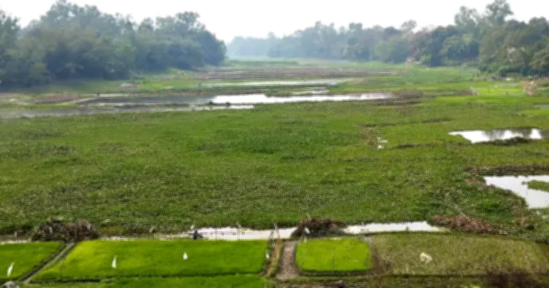 নদীর বুকে জেগে উঠেছে চর ও কৃষি কাজ