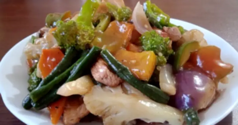 চিকেন স্টার-ফ্রাই: প্যানে আরও কিছু তেল দিন। ম্যারিনেড করা চিকেন ২–৩ মিনিটের জন্য ভাজুন, যতক্ষণ না চিকেন প্রায় ৮০% রান্না হয়ে আসে। আগে রান্না করা সবজি যোগ করুন। এবার সস ও কর্নস্টার্চ দিয়ে তৈরি করুন। স্টার-ফ্রাই সস প্যানে ঢালুন এবং সব কিছু ভালোভাবে নাড়ুন। কর্নস্টার্চ ও পানির মিশ্রণ ঢেলে দিন। সস ঘন না হওয়া পর্যন্ত রান্না করুন।