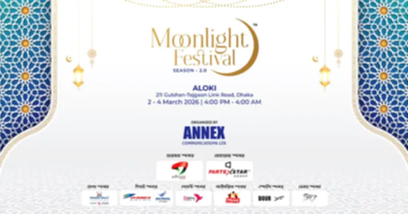 পড়ন্ত বিকেলের সোনালি রোদ যখন রমজানের স্নিগ্ধ সন্ধ্যায় মিলিয়ে যায়, তখনই শহুরে আকাশে জেগে ওঠে উৎসবের মধুর ডাক। সেই ডাকে সাড়া দিতে আবারও ফিরে আসছে এনেক্স কমিউনিকেশন্স লিমিটেডের বহুল প্রতীক্ষিত আয়োজন—মুনলাইট ফেস্টিভ্যাল ২.০। গতবারের সাফল্যের ধারাবাহিকতায় এবারের উৎসব প্রস্তুত হয়েছে আরও বিস্তৃত পরিসরে ও সমৃদ্ধ বৈচিত্র্যে। ২০২৬ সালের ২ মার্চ থেকে ৪ মার্চ পর্যন্ত ঢাকার প্রাণকেন্দ্রে আলোকিত হবে বাহারি খাবার, প্রাণচঞ্চল আড্ডা ও নির্মল আনন্দে ভরপুর এক প্রাণবন্ত মঞ্চ।