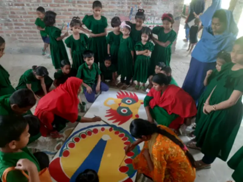 বৈশাখের রঙে সেজেছে শিশুপল্লী প্লাস, মা ও শিশুদের মোটিভ তৈরিতে ব্যস্ততা