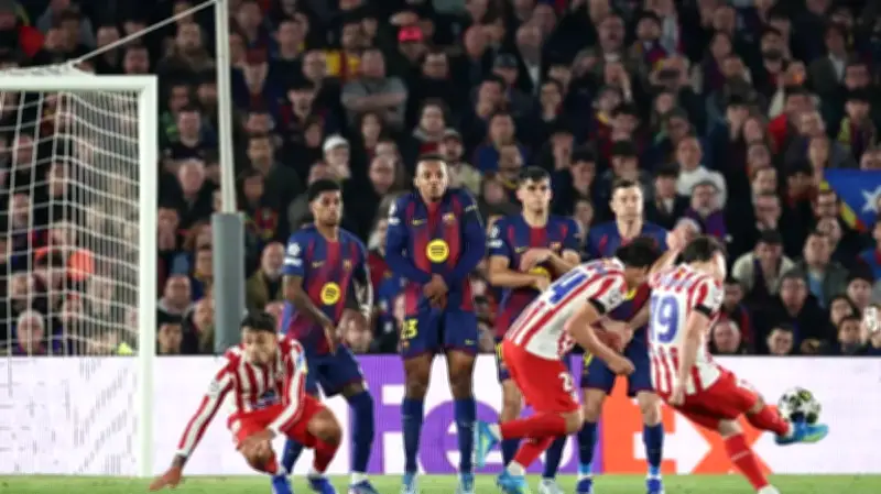 বার্সেলোনার বিপক্ষে ফ্রি–কিকে গোল করছেন আতলেতিকোর আর্জেন্টাইন ফরোয়ার্ড হুলিয়ান আলভারেজ। লা লিগায় তারা রীতিমতো শাসন করছে। লিগে বর্তমান চ্যাম্পিয়ন বার্সেলোনা এবারও শিরোপার লড়াইয়ে বেশ এগিয়ে। অথচ যেই চ্যাম্পিয়নস লিগের সেই বিখ্যাত থিম সংটা বেজে ওঠে, বার্সেলোনার হাঁটু যেন কাঁপতে শুরু করে। লা লিগার সেই ‘দাপুটে’ বার্সেলোনা ইউরোপের মঞ্চে এসে যেন এক সাধারণ দল। কেন?