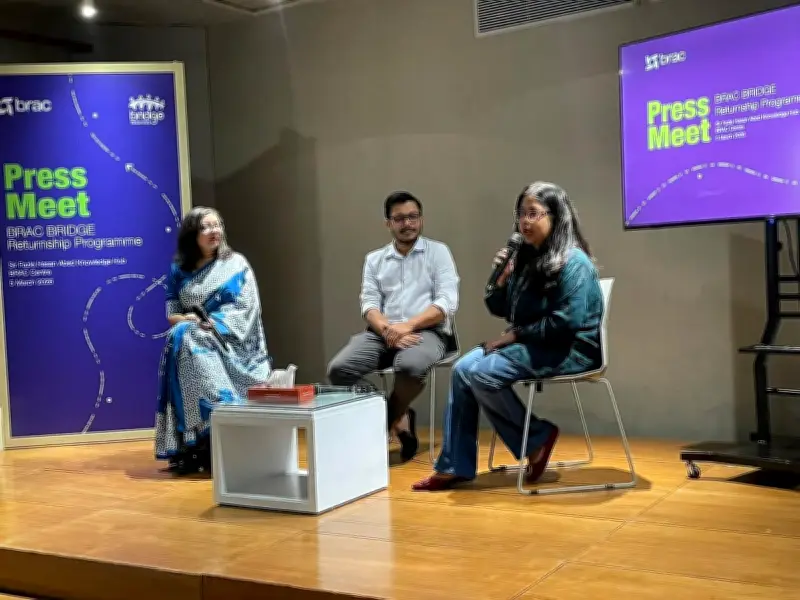 চাকরি থেকে বিরতি নেওয়া নারীদের আবার কর্মক্ষেত্রে ফিরিয়ে আনতে ব্র্যাক 'ব্রিজ রিটার্নশিপ' নামে একটি বিশেষ কর্মসূচি চালু করেছে। গত বছর শুরু হওয়া এই উদ্যোগের অধীনে, বিরতি নেওয়া নারীরা ব্র্যাকের বিভিন্ন প্রকল্পে ছয় মাসের জন্য কাজ করার সুযোগ পাচ্ছেন। এই কাজের পাশাপাশি, তাঁদের দক্ষতা উন্নয়ন, নেতৃত্ব প্রশিক্ষণ, মেন্টরিং এবং পেশাগত উন্নয়নের জন্য নানা ধরনের সহায়তা প্রদান করা হচ্ছে।