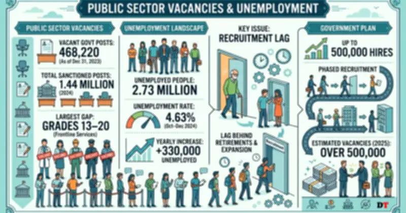 প্রায় ৫ লাখ সরকারি পদ শূন্য থাকার পাশাপাশি ২৭ লাখের বেশি মানুষ বেকার—এটি শ্রম চাহিদা এবং সরকারি খাতের স্টাফিংয়ের মধ্যে ক্রমবর্ধমান ব্যবধানকে তুলে ধরছে। বিশ্লেষকরা বলছেন, এই অসামঞ্জস্য নিয়োগ ব্যবস্থাপনা এবং কর্মশক্তি পরিকল্পনায় গভীর দুর্বলতা প্রতিফলিত করে।