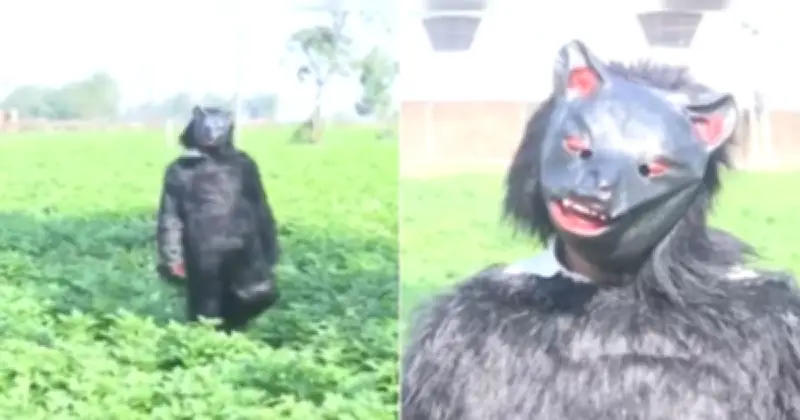 ভাল্লুকের কস্টিউমে ফসল রক্ষার চেষ্টা