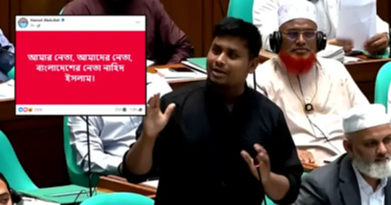 পোস্টে হাসনাত লিখেন, ‘আমার নেতা, আমাদের নেতা, বাংলাদেশের নেতা নাহিদ ইসলাম।’ এই পোস্ট দেওয়ার পরপরই সেটি সামাজিক যোগাযোগমাধ্যমে ছড়িয়ে পড়ে। এর কয়েক ঘণ্টা পর সংসদে নাহিদের দেওয়া একটি বক্তব্যের ভিডিও প্রকাশ করে একই ক্যাপশন লেখেন হাসনাত।