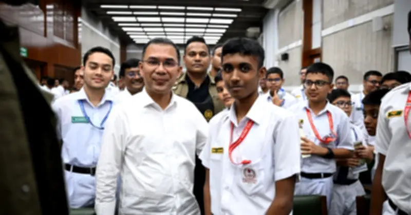 প্রধানমন্ত্রী তারেক রহমান জাতীয় সংসদ ভবন পরিদর্শনে আসা নিজের প্রাক্তন কলেজের শিক্ষার্থীদের সঙ্গে শুভেচ্ছা বিনিময় করেছেন। প্রধানমন্ত্রীর প্রাক্তন কলেজ ঢাকা রেসিডেন্সিয়াল মডেল কলেজের শিক্ষার্থীরা বৃহস্পতিবার (৩০ এপ্রিল) বিকেলে সংসদ অধিবেশন পরিদর্শন করতে আসেন। প্রধানমন্ত্রী তারেক রহমান এ সময় তাদের সাথে শুভেচ্ছা বিনিময় করেন।