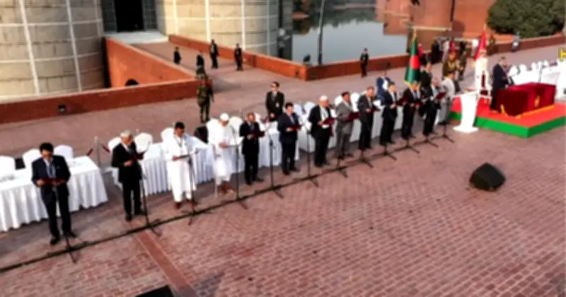 জাতীয় সংসদের দক্ষিণ প্লাজায় একটি ঐতিহাসিক অনুষ্ঠানে মন্ত্রী ও প্রতিমন্ত্রী হিসেবে শপথ নিয়েছেন মোট ৪৯ জন ব্যক্তি। রাষ্ট্রপতি মো. সাহাবুদ্দিন তাদের শপথবাক্য পাঠ করান, যা দেশের রাজনৈতিক অঙ্গনে নতুন মাত্রা যোগ করেছে। এই শপথগ্রহণ অনুষ্ঠানে উপস্থিত ছিলেন উচ্চপদস্থ সরকারি কর্মকর্তা ও রাজনৈতিক নেতৃবৃন্দ।