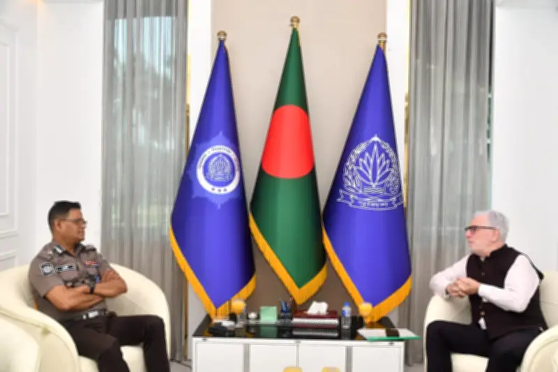পুলিশ সদর দপ্তরে বাংলাদেশ পুলিশের মহাপরিদর্শক (আইজিপি) মো. আলী হোসেন ফকিরের সঙ্গে বাংলাদেশে নিযুক্ত আয়ারল্যান্ডের রাষ্ট্রদূত কেভিন কেলির একটি গুরুত্বপূর্ণ সৌজন্য সাক্ষাৎ সম্পন্ন হয়েছে। এই বৈঠকটি আজ মঙ্গলবার, ৩১ মার্চ তারিখে ঢাকার পুলিশ সদর দপ্তরে অনুষ্ঠিত হয়, যা উভয় দেশের মধ্যে নিরাপত্তা ও পুলিশি সহযোগিতা জোরদার করার ক্ষেত্রে একটি উল্লেখযোগ্য পদক্ষেপ হিসেবে বিবেচিত হচ্ছে।