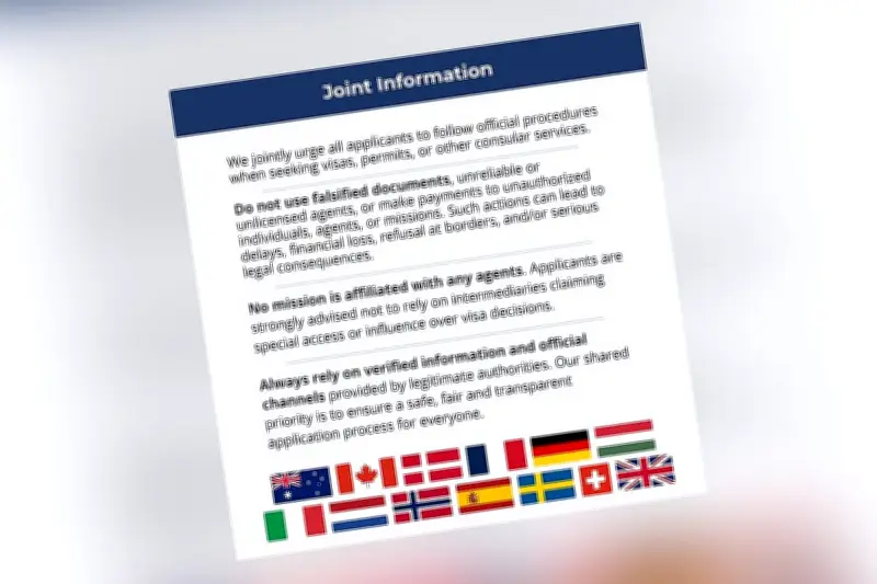 যুক্তরাজ্য, কানাডা, জার্মানিসহ পশ্চিমা বিশ্বের ১৩টি দেশ তাদের দূতাবাসগুলো থেকে ভিসাসহ কনস্যুলার সেবা নেওয়ার ক্ষেত্রে বাংলাদেশি নাগরিকদের সতর্ক থাকার পরামর্শ দিয়েছে। এই দেশগুলোর পক্ষ থেকে একটি যৌথ বিবৃতি জারি করা হয়েছে, যাতে ভিসা, পারমিট ও অন্যান্য কনস্যুলার সেবা গ্রহণে আবেদনকারীদের জন্য কয়েকটি গুরুত্বপূর্ণ নির্দেশনা অন্তর্ভুক্ত করা হয়েছে।