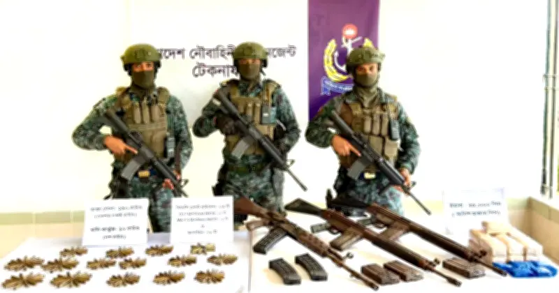 কক্সবাজারের টেকনাফ উপজেলায় রোববার রাতে নৌবাহিনীর একটি বিশেষ অভিযানে বিপুল পরিমাণ বিদেশি অস্ত্র, গোলাবারুদ ও ইয়াবা বড়ি জব্দ করেছে নৌবাহিনী। নৌবাহিনীর কর্মকর্তারা জানান, তারা নিয়মিতভাবে তাদের দায়িত্বপূর্ণ এলাকায় মাদক, অবৈধ অস্ত্র উদ্ধার ও সন্ত্রাস দমনে অভিযান চালিয়ে যাচ্ছে।