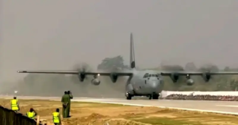 বাংলাদেশ সীমান্তসংলগ্ন ভারতের উত্তর-পূর্বাঞ্চলীয় রাজ্য আসামে জাতীয় মহাসড়কে অবতরণ করেছে ভারতের প্রধানমন্ত্রী নরেন্দ্র মোদিকে বহনকারী সি–১৩০জে সামরিক পরিবহন বিমান। জরুরি অবতরণের সুবিধাসহ নির্মিত এই মহাসড়ক কাম রানওয়েতে তাঁর অবতরণকে কৌশলগত দিক থেকে অত্যন্ত গুরুত্বপূর্ণ হিসেবে বিবেচনা করা হচ্ছে। ভারতীয় গণমাধ্যম এনডিটিভি এ খবর নিশ্চিত করেছে।