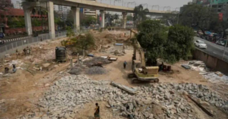 মেট্রোরেল অবকাঠামো ও অসম ভূমির দৃশ্য