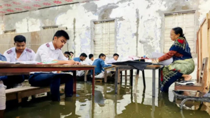 কুমিল্লা নগরে মঙ্গলবার সকালে হওয়া বৃষ্টির ফলে সৃষ্ট জলাবদ্ধতায় পড়েছে এসএসসি পরীক্ষার্থীরা। কুমিল্লা ঈশ্বর পাঠশালা (উচ্চবিদ্যালয়) কেন্দ্রে পরীক্ষার হলে পানি ঢুকে পড়ায় শিক্ষার্থীরা বেঞ্চে পা তুলে পরীক্ষা দিয়েছে। দুপুর ১২টার দিকে দেখা যায়, পুরো বিদ্যালয় আঙিনা পানিতে তলিয়ে গেছে। পানি প্রবেশ করেছে পরীক্ষার কক্ষেও। মাঠের পশ্চিম পাশের পুরোনো একতলা টিনশেড ভবনটির পুরোটাতেই পানি ঢুকেছে। ভবনটির প্রতিটি কক্ষে বসার বেঞ্চে পা তুলে লিখছে শিক্ষার্থীরা। হল পর্যবেক্ষকের দায়িত্বে থাকা শিক্ষকেরাও চেয়ারে পা তুলে বসে আছে। এসব পানিতে নালার ময়লা ভাসতে দেখা গেছে।