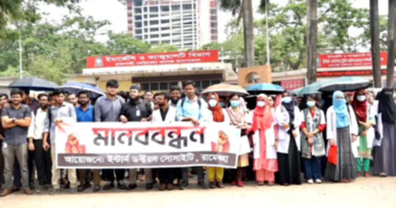 রাজশাহী মেডিক্যাল কলেজ হাসপাতালে ইন্টার্ন চিকিৎসকদের কর্মবিরতি, চিকিৎসাসেবা ব্যাহত