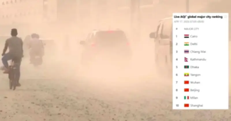 আন্তর্জাতিক বায়ুমান পর্যবেক্ষণকারী প্রতিষ্ঠান আইকিউএয়ারের সর্বশেষ তথ্য অনুযায়ী, শুক্রবার (১৭ এপ্রিল) সকাল ৯টার দিকে ঢাকার এয়ার কোয়ালিটি ইনডেক্স বা একিউআই স্কোর ছিল ১৭১। এই স্কোর নিয়ে ঢাকা বিশ্বের দূষিত শহরের তালিকায় পঞ্চম অবস্থানে স্থান পেয়েছে। একই সময়ে তালিকার শীর্ষে ছিল মিশরের রাজধানী কায়রো, যার একিউআই স্কোর রেকর্ড করা হয়েছে ৬৫৮। দ্বিতীয় অবস্থানে রয়েছে ভারতের কলকাতা, তৃতীয় স্থানে থাইল্যান্ডের চিয়াং মাই এবং চতুর্থ স্থানে নেপালের রাজধানী কাঠমান্ডু। দূষিত শহরের শীর্ষ দশে থাকা অন্যান্য শহরগুলোর একিউআই স্কোর ১০৭ থেকে ৬৫৮-এর মধ্যে পরিবর্তিত হয়েছে বলে প্রতিবেদনে উল্লেখ করা হয়েছে।