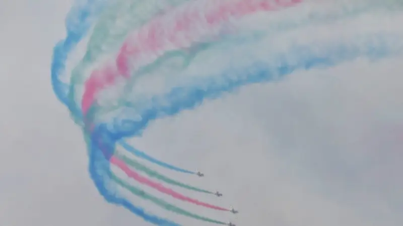সকাল ১০টা ৫৫ মিনিটের দিকে আকাশ থেকে প্যারাস্যুট দিয়ে প্যারাট্রুপাররা নামতে শুরু করেন, যারা জাতীয় পতাকাসহ বিভিন্ন পতাকা নিয়ে মাটিতে অবতরণ করেন। এরপর সেনাবাহিনী, নৌবাহিনী, বিজিবি ও র্যাবের হেলিকপ্টার ও বিমান জাতীয় প্যারেড স্কয়ারের আকাশে উড়তে থাকে, যা দর্শকদের জন্য একটি চমকপ্রদ দৃশ্য তৈরি করে।