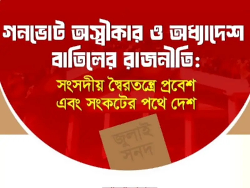 জাহাঙ্গীরনগর বিশ্ববিদ্যালয় কেন্দ্রীয় শিক্ষার্থী সংসদ (জাকসু) আয়োজিত একটি গুরুত্বপূর্ণ সেমিনার অভ্যন্তরীণ বিতর্কের মুখে সাময়িকভাবে স্থগিত করা হয়েছে। 'গণভোট অস্বীকার ও অধ্যাদেশ বাতিলের রাজনীতি: সংসদীয় স্বৈরতন্ত্রে প্রবেশ এবং সংকটের পথে দেশ' শীর্ষক এই সেমিনারটি আজ বৃহস্পতিবার বেলা তিনটায় বিশ্ববিদ্যালয়ের জহির রায়হান মিলনায়তনে অনুষ্ঠিত হওয়ার কথা ছিল।